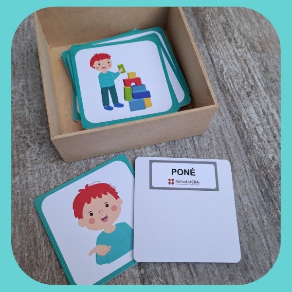 Este KIT HOGAR cuenta con 11 Pictogramas de PVC espumado de 10x10 cm, caja de madera para guardado.
